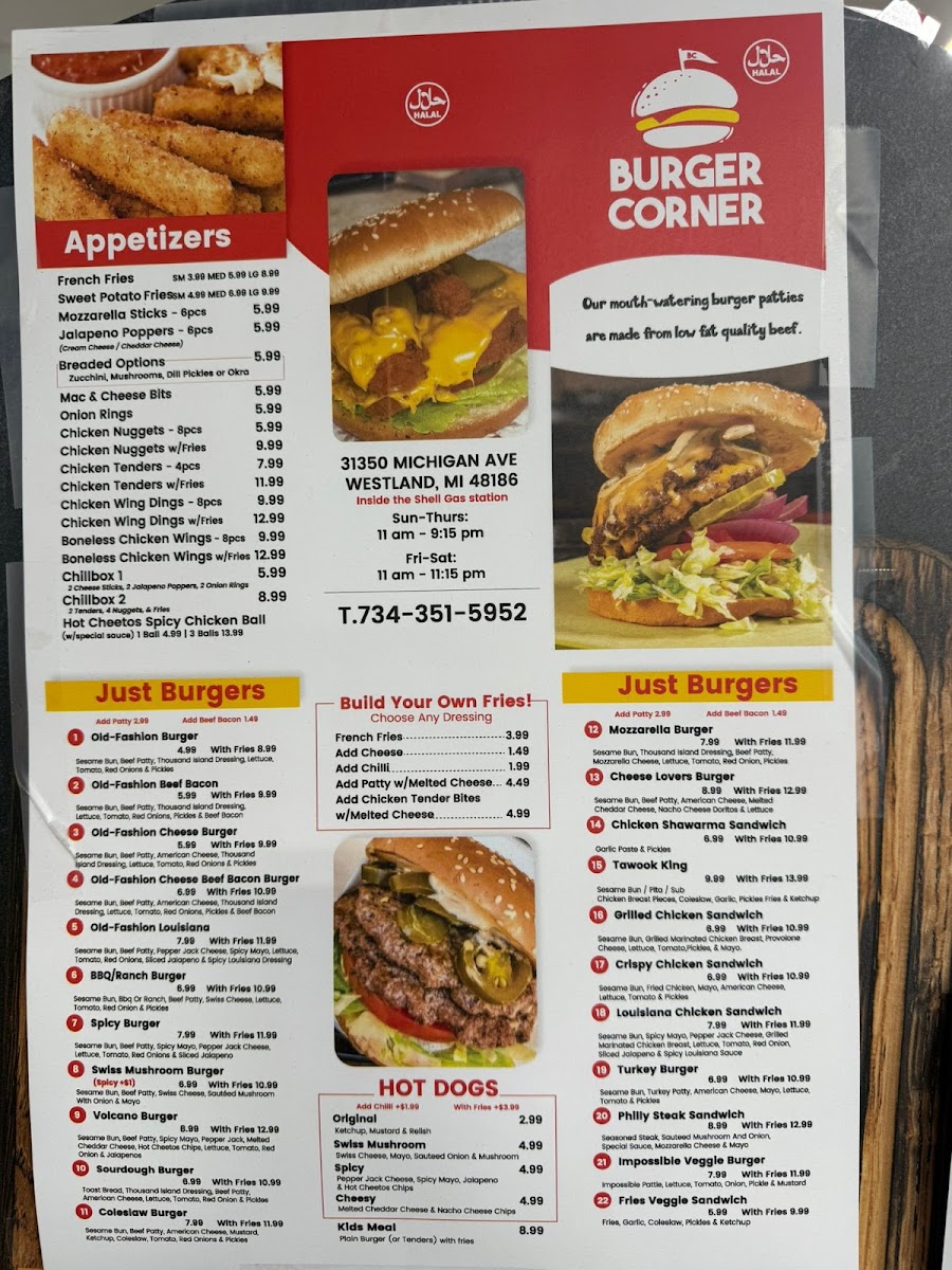 Welcome to Burger Corner, a delightful hidden gem located at 31350 Michigan Ave, Westland, MI. Renowned for its vibrant menu, Burger Corner caters to burger lovers and adventurous eaters alike. Customers rave about the Old Fashion Cheese Burger, featuring perfectly cooked patties, while the Hot Cheetos Chicken Balls have become a uniquely popular dish that many can't resist.